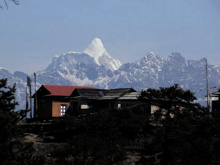 This morning we have an early rise to walk up to Pikey Peak. Initially we walk through forest, until it opens up and we then continue upward. Once we arrive at the prayer flags that mark the top of the hill, the view is spectacular. On a clear day we will have mountain views of Kanchenjunga, Everest, Makalu, Lhotse, Khumbu Kharna, Ama Dablam, Bharuntse, Mera Peak, Kangteka, Tamserku, Tauche Peak, Dudh Khunda, Numbur Himal, Gaurishankar, Langtang range, Gosaikund, Ganesh Himal and last but not least the Annapurna range to name but a few. There are more than 100 peaks that can be seen from this view point at 4065m/ 13,336ft. We then walk back downhill to Jasabhanjang, our lunch stop, before we continue to walk down through alpine and rhododendron forest to Pikey Khop.