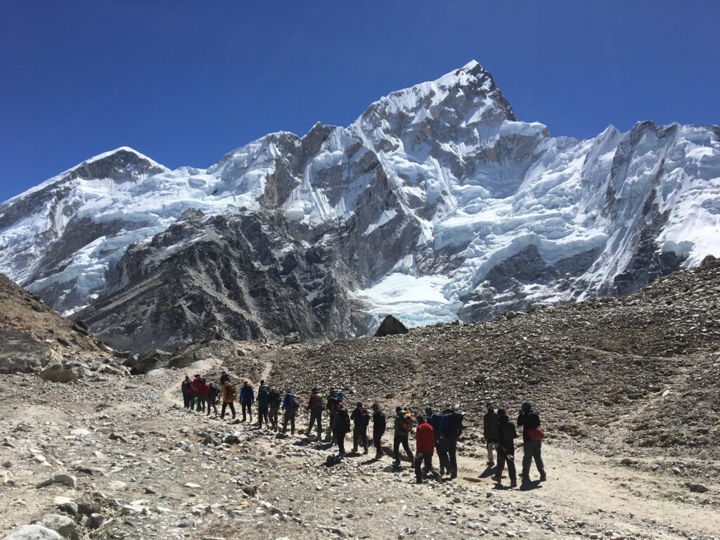 Trek to Gorak Shep. We will start early this morning. About three hours beyond Lobuche we reach Gorak Shep (5,180m/17,126ft), the site of the 1953 Everest Expedition’s base camp. We will be sleeping here tonight on return from Everest Base Camp. We will fill up with more water and continue the famous trail to Everest Base Camp. We will need to be careful as there is a chance of some small rock fall on our left as we move onto the Khumbu Glacier. This is it you will walk the final section into Everest Base Camp, walk around base camp, go to the edge of the Khumbu Ice fall. If you are trekking in from the end of March to May you will meet some of the climbing teams preparing to summit the world’s highest mountain and experience this magical place, before return back to Gorak Shep which may take 2 hours.
