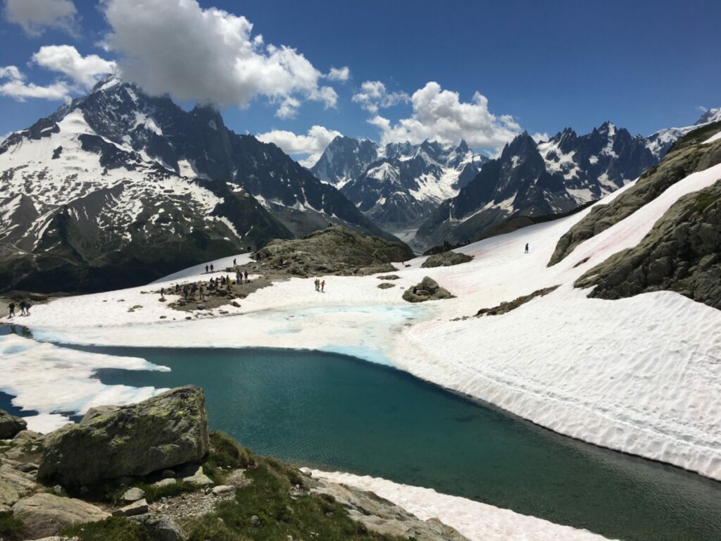 Our final day of trekking! Today’s hike takes us up and over Balcon des Aiguilles Rouges (“Balcony over the Red Peaks”) before a climb to Lac Blanc. Lac Blanc is one of Chamonix’s most famous hikes and features a high mountain panorama reflected on the turquoise waters of a beautiful alpine lake. This is also an excellent area to see Ibex and marmots. We’ll soak up all the beautiful surrounding scenery: Aiguille Verte, Les Drus, La Mer de glace, Aiguilles de Chamonix, Mont Blanc du Tacul, Aiguille du Goûter, and finally, Mont Blanc! We’ll finish with a descent towards Chamonix and a short gondola ride to the hamlet of Le Praz. Tonight’s accommodation is in a wonderful 4-star hotel with a sauna and spa, where we’ll get settled in and relax after our hike. Tonight, we’ll have a celebratory dinner out on the town in Chamonix.