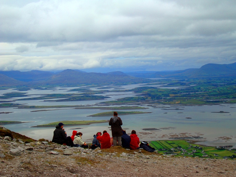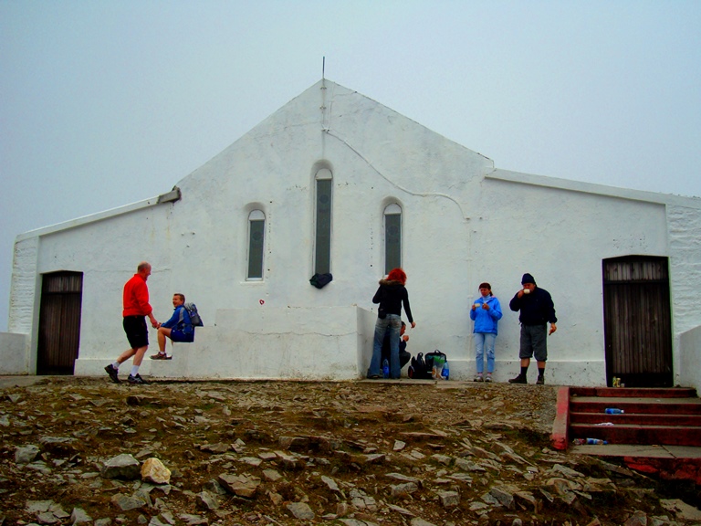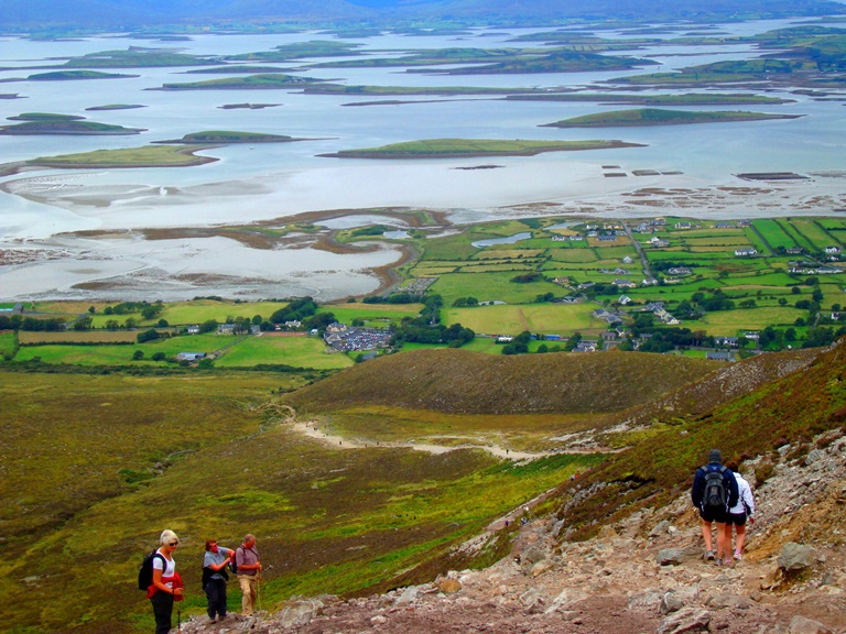 Terrain is mixed rock and dirt, slippy, steep and rocky. You need proper hiking boots, equipment and take your time on this long beautiful walk up Ireland’s holy mountain.