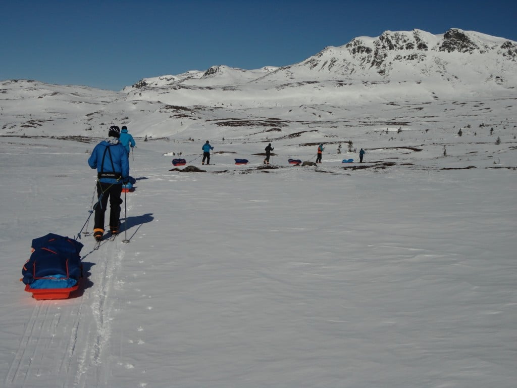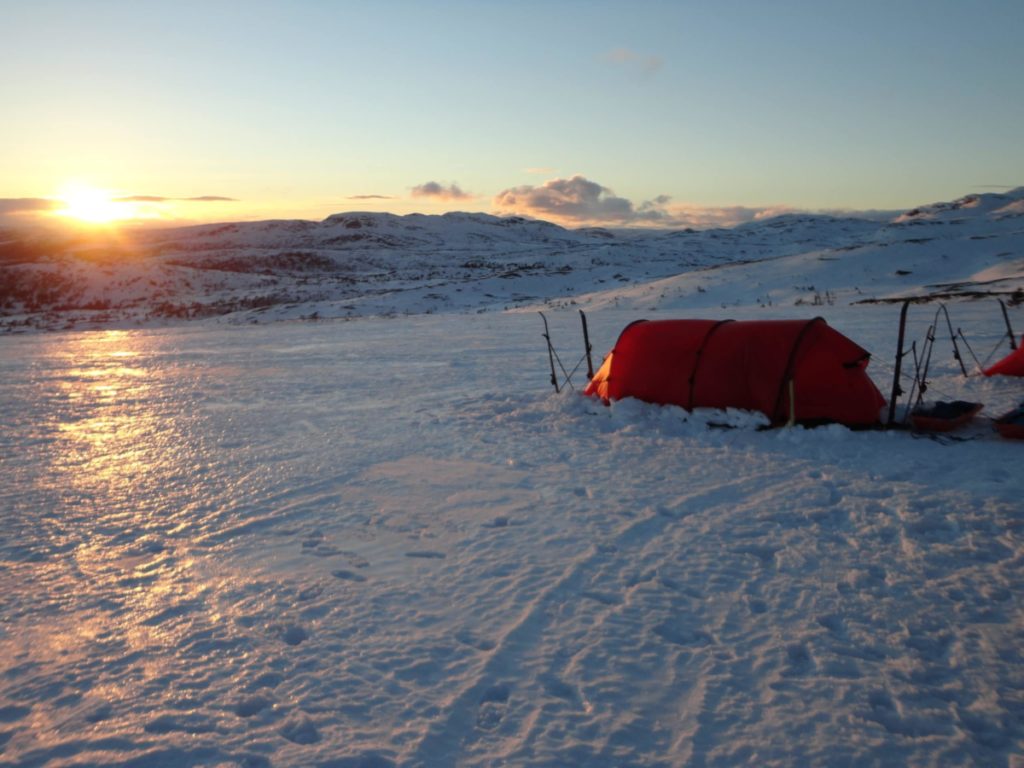 Introduction to use of personal clothing, how to avoid cold weather injuries…and then we’re outside for our first cross country skiing session. Our goal is to teach you how to ski on cross country skis, and be able to use the equipment in a correct and energy-saving way. Lunch back at the fjellstue before a short ski tour. Evening: cover some of the tricks and tips about how to spend a night in a tent in winter in relative comfort, learning about polar routines, and equipment.