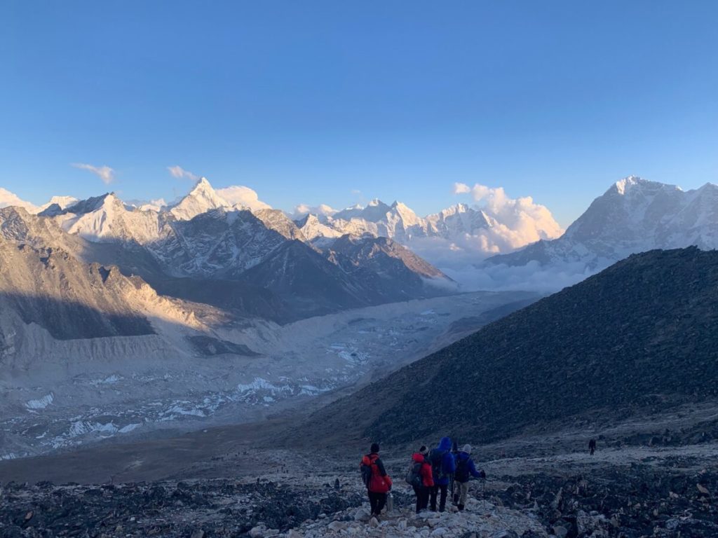 Today will be a long and very rewarding day! We will be up early to start our trek to Gorak Shep, which takes approximately 3 hours to reach 5,180m/ 17,126 feet. Today is a very challenging day on the trail, as we cross glacial moraine on mixed rocky terrain with a lot of up and down hill to cover. Gorak Shep was the site of the 1953 Everest Expedition’s Base Camp and where we will stop for lunch. After lunch, you will check in to your room and relax before heading up Kala Patthar in the afternoon to see the sun set over Mount Everest. The trail from Gorak Shep leads steeply uphill all the way to the top of Kala Patthar at 5,645m/ 18,520 feet. This takes approximately 2 hours to reach the top and the views off Kala Patthar are spectacular and you will be rewarded with the famous view of Mount Everest! After enjoying the mountain views at the top, we will return to Gorak Shep, which takes about one hour for the evening. Today we will hike for approximately 6 hours.