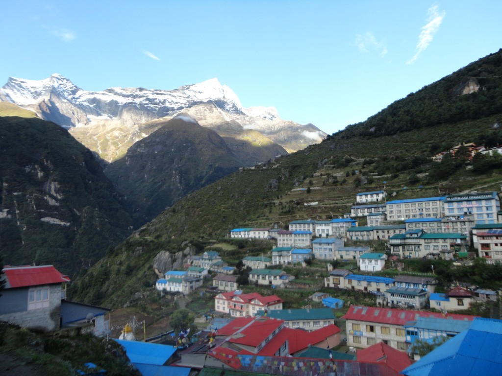 Today we make our way back to Namche Bazaar for a shower, chicken sizzler or veg lasagna. This will take two hours to make the journey back to Namche Bazaar.